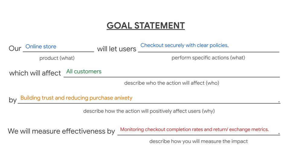 To provide a clear, measurable outcome for the project, we established specific Goal Statements that align directly with the primary objectives. These define the success metrics for the design solutions: