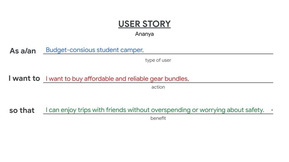 Ananya needs affordable and reliable camping gear bundles because she is budget-conscious and wants to enjoy safe trips without worrying about safety.