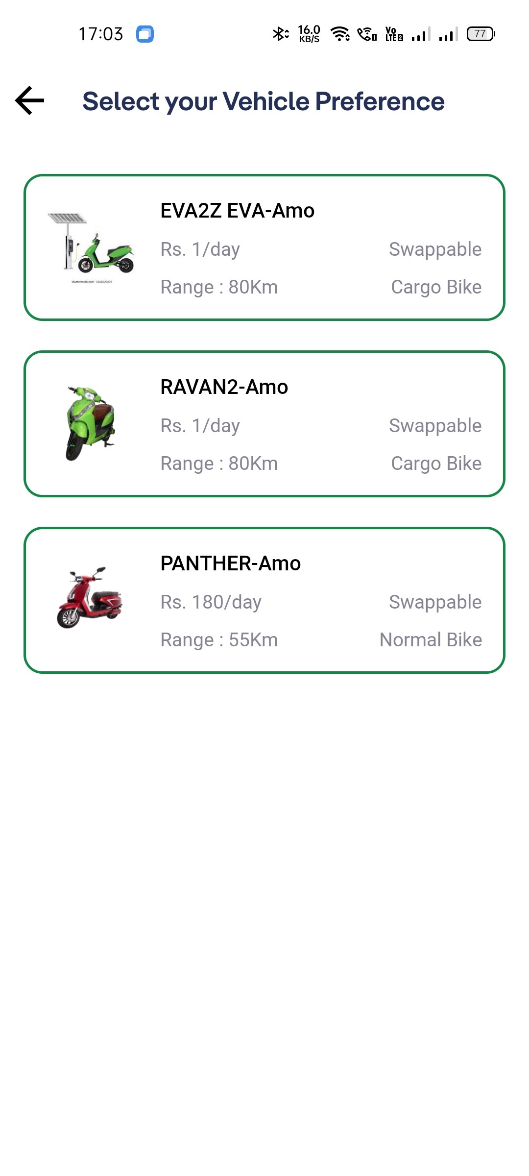 The “Selected Vehicle” screen lacked clear descriptions or visual context for the vehicle.