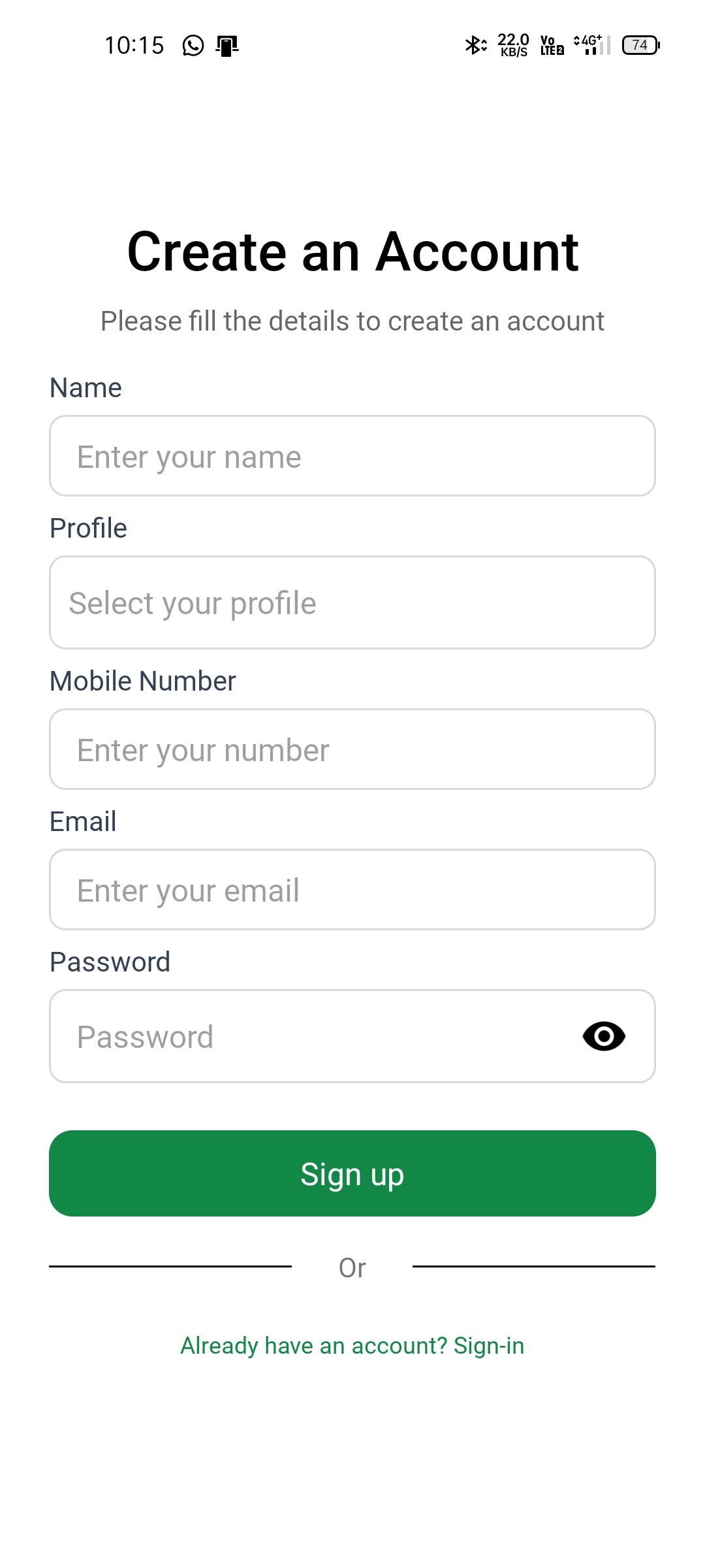 The authentication flow covered essential screens for account creation and sign-in, but lacked visual balance and consistency. Misaligned microcopy, inconsistent branding, and uneven color hierarchy made the experience feel less polished and reduced clarity during input-heavy interactions.