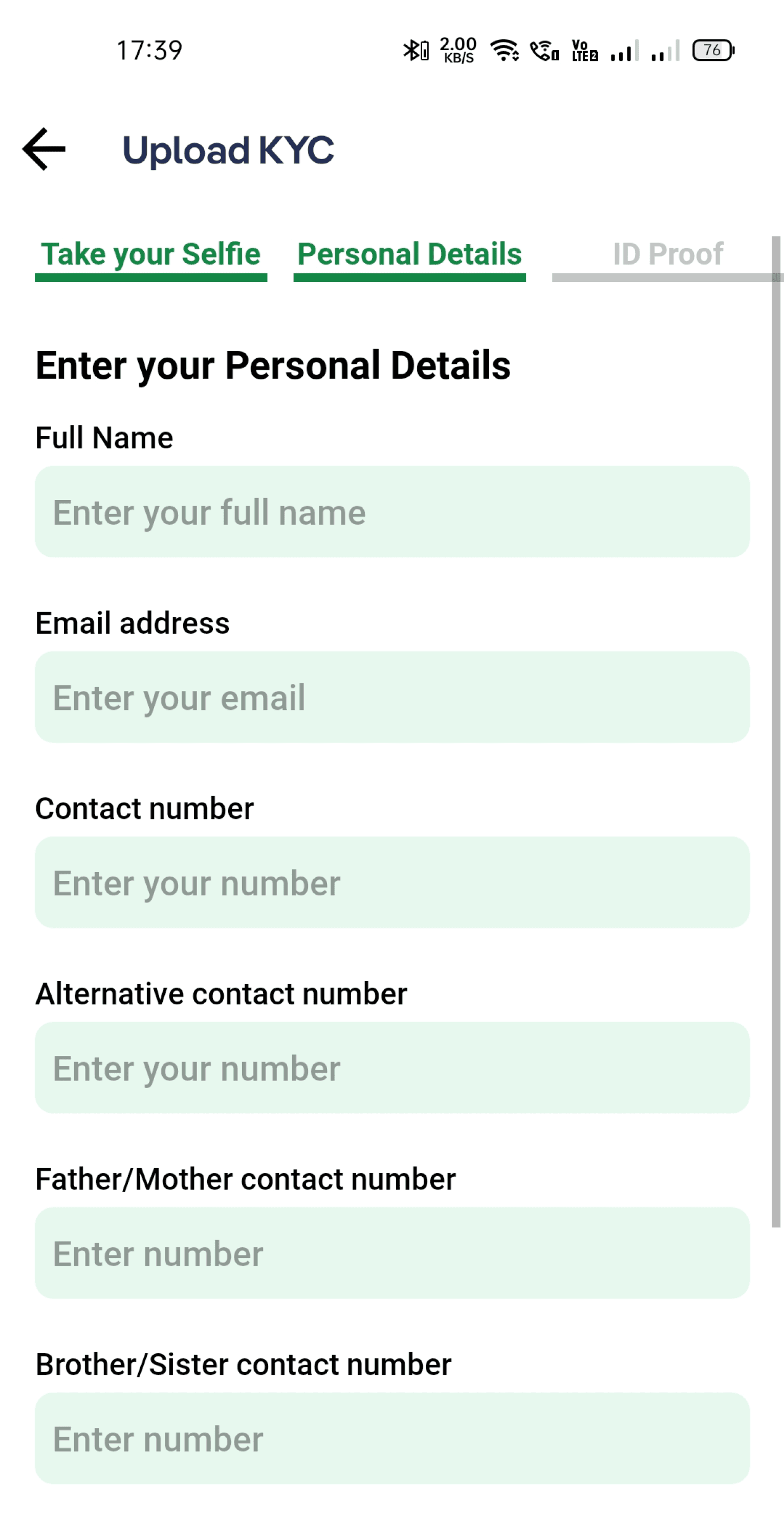 KYC form contained more than 10 text fields on a single screen, creating high cognitive load.